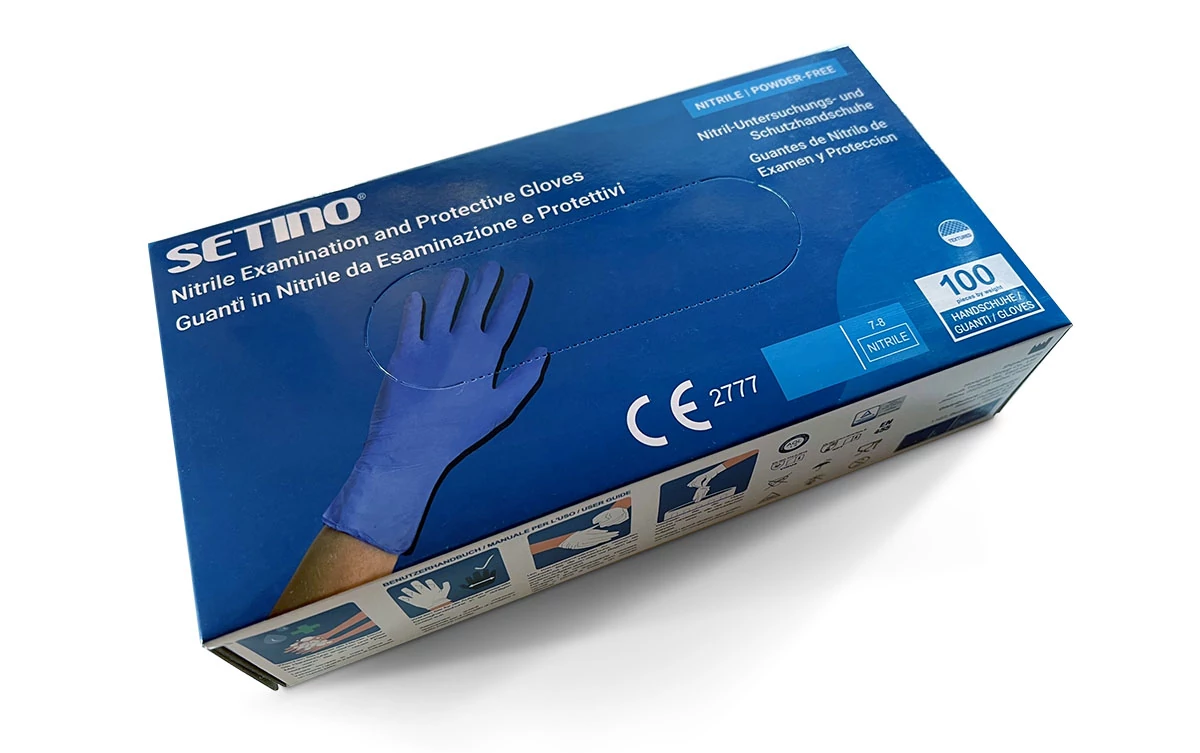 Single-use, powder-free, rolled stem, can be worn with both hands. Does not contain natural latex.